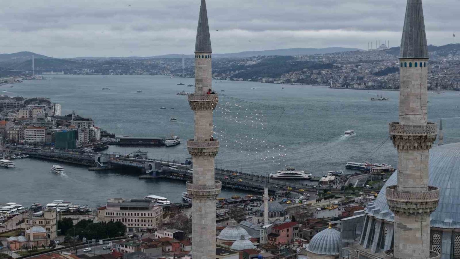 Ramazan-ı Şerif’in habercisi olan ve Osmanlı Cihan Devleti’nden günümüze uzanan mahya geleneği, İstanbul’un selatin camilerinde yeniden hayat buldu. Ramazan ayının yaklaşmasıyla birlikte minareler arasına asılan mahyalar, kentin siluetine manevi bir atmosfer kazandırdı. Bu kapsamda Süleymaniye Camii’ne asılan “Ramazan Kur’an Ayıdır” yazılı mahya, İstanbul Boğazı’nın eşsiz manzarasıyla birlikte havadan görüntülendi.