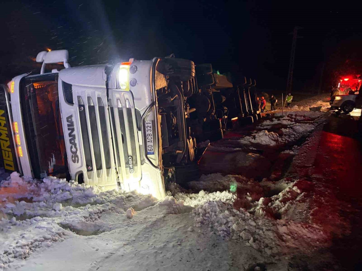 Refahiye’de hayvan yüklü tır kazası: 45 büyükbaş kurtarıldı