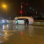 Refüje çarpıp yan yatan otomobilde bulunanların burnu bile kanamadı