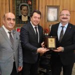 DAGC ve DGF heyeti, Atatürk Üniversitesi Rektörü Prof. Dr. Ahmet Hacımüftüoğlu’na, Erzurum’un eğitim hayatına katkıları ve bu yöndeki çalışmaları sebebiyle teşekkür plaketi takdim etti.