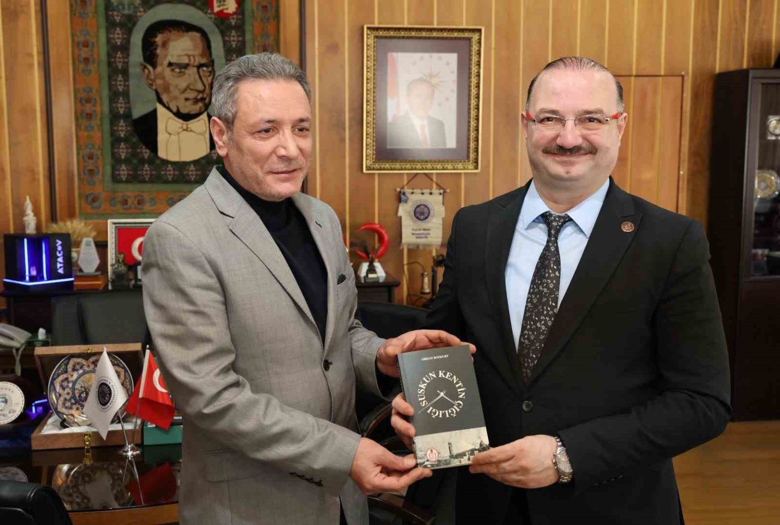 Ziyarette ayrıca DAGC Yönetim Kurulu Üyesi gazeteci-yazar Orhan Bozkurt, “Suskun Kentin Çığlığı” adlı kitabını imzalayarak Atatürk Üniversitesi Rektörü Prof. Dr. Ahmet Hacımüftüoğlu’na hediye etti.