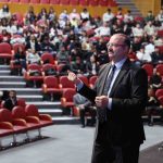 Atatürk Üniversitesi Rektörü Prof. Dr. Ahmet Hacımüftüoğlu, Tıp Fakültesi 1 ve 2. sınıf öğrencileriyle bir araya gelerek kariyer yolculuğunu, akademik birikimini ve mesleki tecrübelerini genç doktor adaylarıyla paylaştı. 15 Temmuz Milli İrade Salonunda gerçekleştirilen programa Tıp Fakültesi Dekanı Prof. Dr. Meltem Alkan Melikoğlu ile akademisyenler da katıldı.