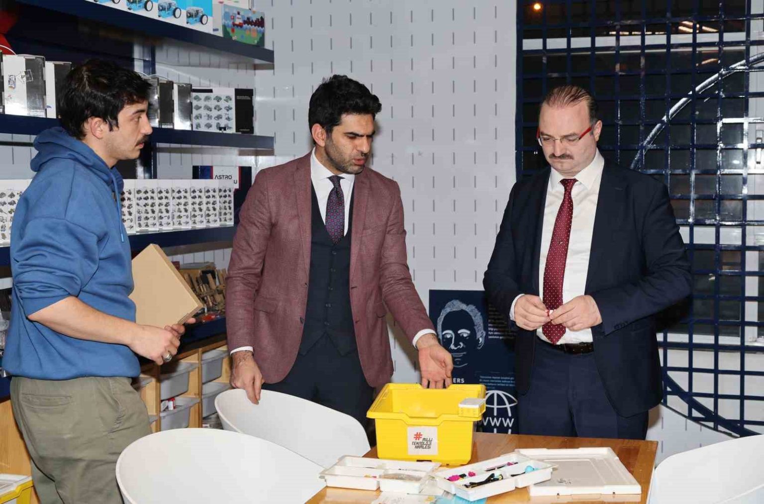 Ziyaret kapsamında merkezde yürütülen öğrenci atölyelerini de inceleyen Rektör Hacımüftüoğlu, yapılan çalışmalar hakkında yetkililerden bilgi aldı.