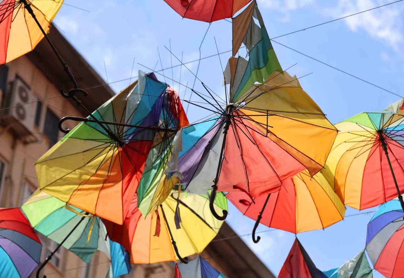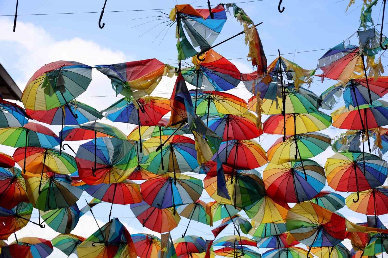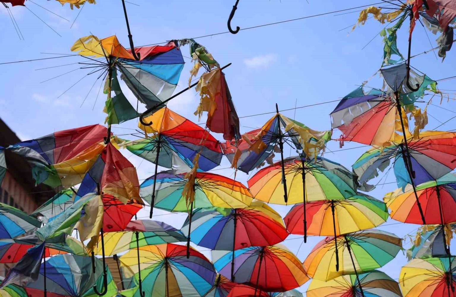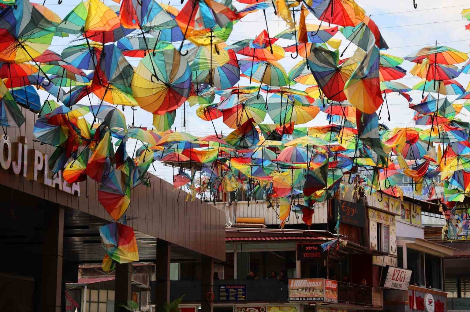 Merkez Seyhan ilçesi Kuruköprü Mahallesi Çakmak Caddesi’ne paralel bir sokağın üst kısmını esnaf bir süre önce renkli şemsiyelerle kapladı. Hem vatandaşların hem de turistlerin ilgisi çeken uygulama ortaya renkli görüntüler çıkarmıştı. Ancak son günlerde etkili olan sağanak yağış ve kuvvetli rüzgar nedeniyle şemsiyelerin büyük bölümü zarar gördü.