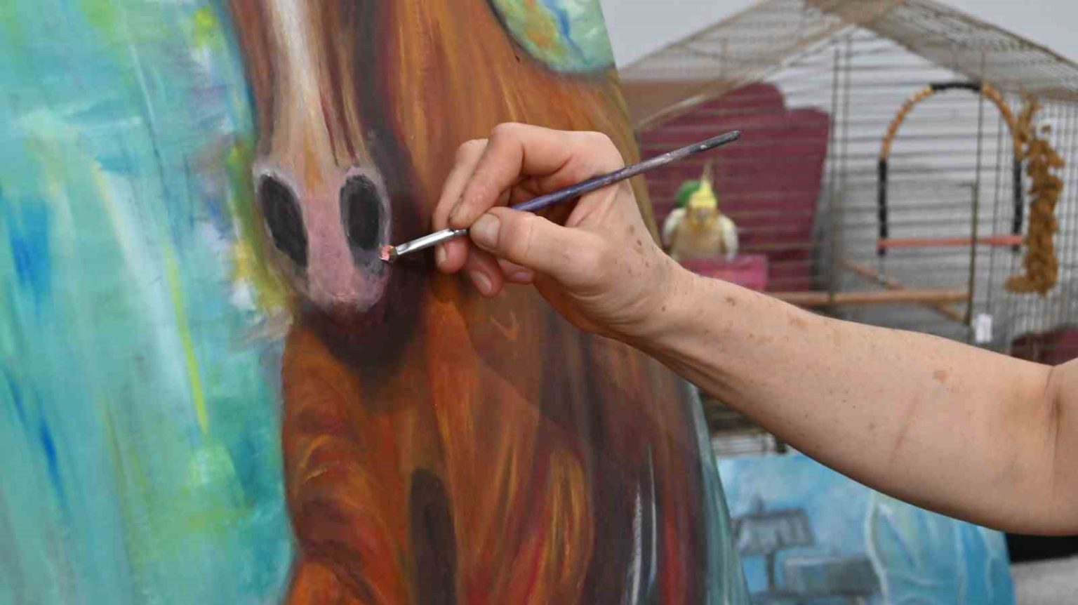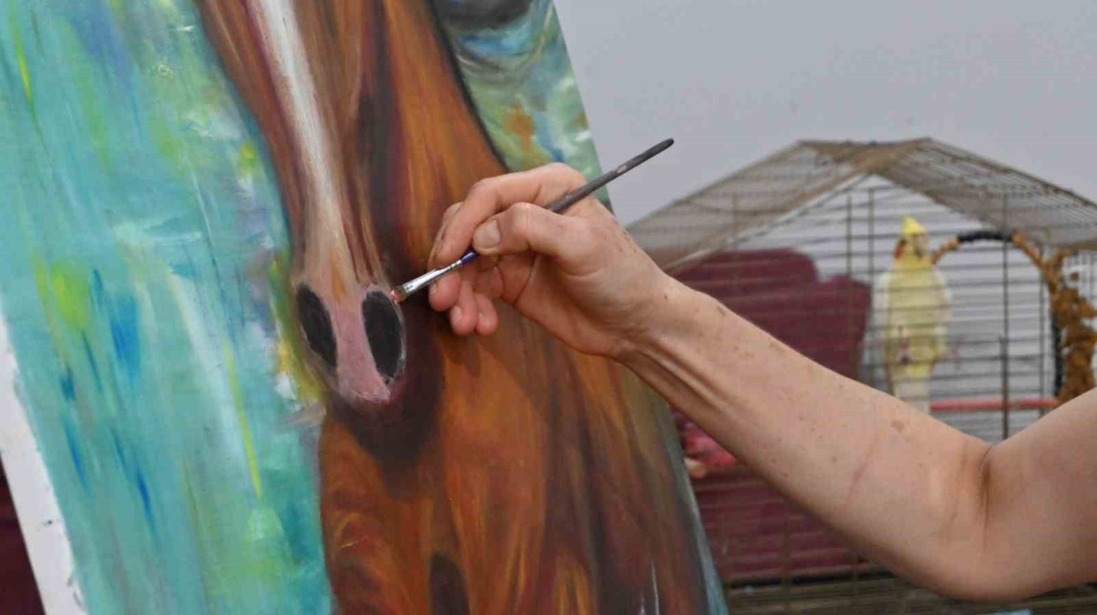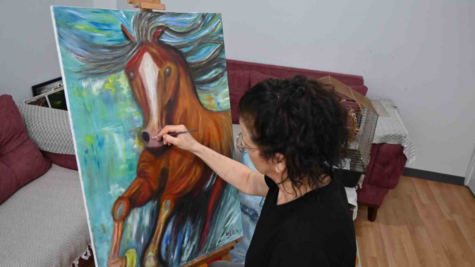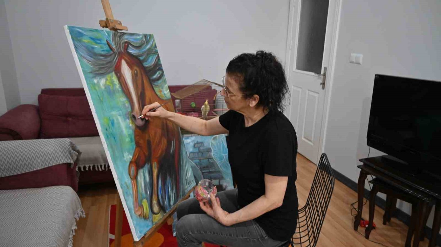 Hatay depremine resim yaparken yakalanan ve asrın felaketinde komşularını kaybeden, felaketin ardından Eskişehir’de göç eden 50 yaşındaki ressam Ayten Cömert, “Depreme resim yaparken yakalandım. O resim fırçası beni hayata bağladı diyebilirim” dedi.