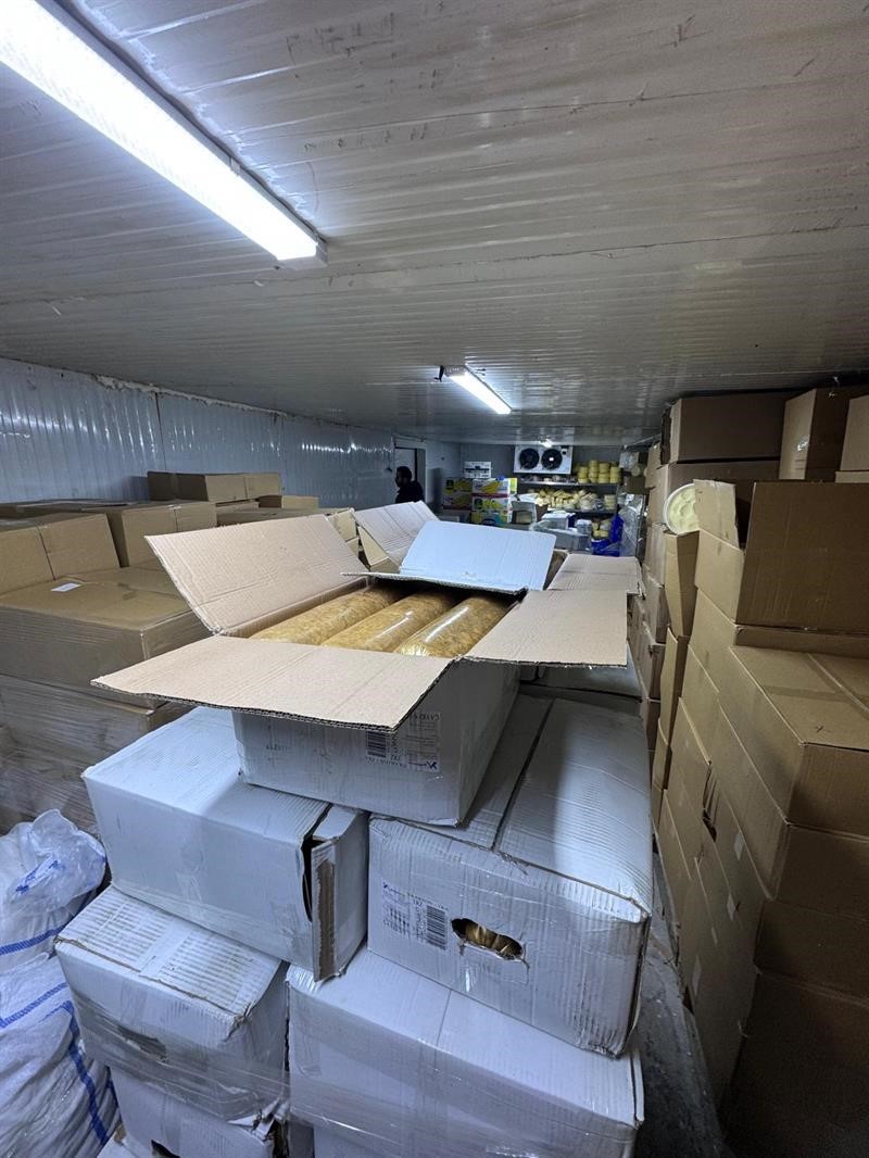 Yapılan kontrolde etiketsiz tereyağı, kavurma, sucuk, bal ve tüketime uygun olmayan zeytin olmak üzere toplamda 9 ton 750 kilogram ürünün depoda bulundurulduğu belirlendi. Söz konusu ürünlere, 5996 sayılı Kanun kapsamında mevzuata ve tüketime aykırı olmaları nedeniyle el konuldu.