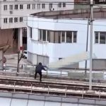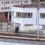 Bursa’da şiddetli rüzgarın kopardığı tabela metro raylarına kadar sürüklendi. Tabelayı kaldırmak için treni durdurup raylara inen vatmanın yaşadığı tehlikeli anlar yürekleri ağza getirdi.
