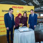 Pegasus Hava Yolları’nın, Sabiha Gökçen SAW – Ljubljana (LJU) hattının açılışı için düzenlenen törene Slovenya Büyükelçisi Gorazd Rencelj, Fahri Konsolos Mustafa Başar Arıoğlu, Pegasus Hava Yolları (PGS) Genel Müdürü (CEO) Güliz Öztürk, PGS Ticaret Genel Müdür Yardımcısı Onur Dedeköylü, PGS Satış Direktörü Emre Pekesen, ISG Ticari İşler ve Strateji Genel Müdür Yardımcısı (CCSO) Kerem Maybek, ISG Mali İşler Genel Müdür Yardımcısı (CFO) Hanita Ahmad ve terminal çalışanları katıldı.