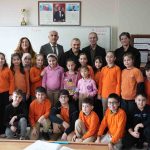 Ayşe Meva Ayvaz, Aybüke Yılmaz ve Asel Eva Zortul; Okul Müdürü Kenan Kahraman, Rehber Öğretmen Dilek Kar ve Görme Engelliler Sınıfı Öğretmeni Emine Aksu eşliğinde Kaynaşlı İlkokulu 4/C sınıfında derse konuk oldu.