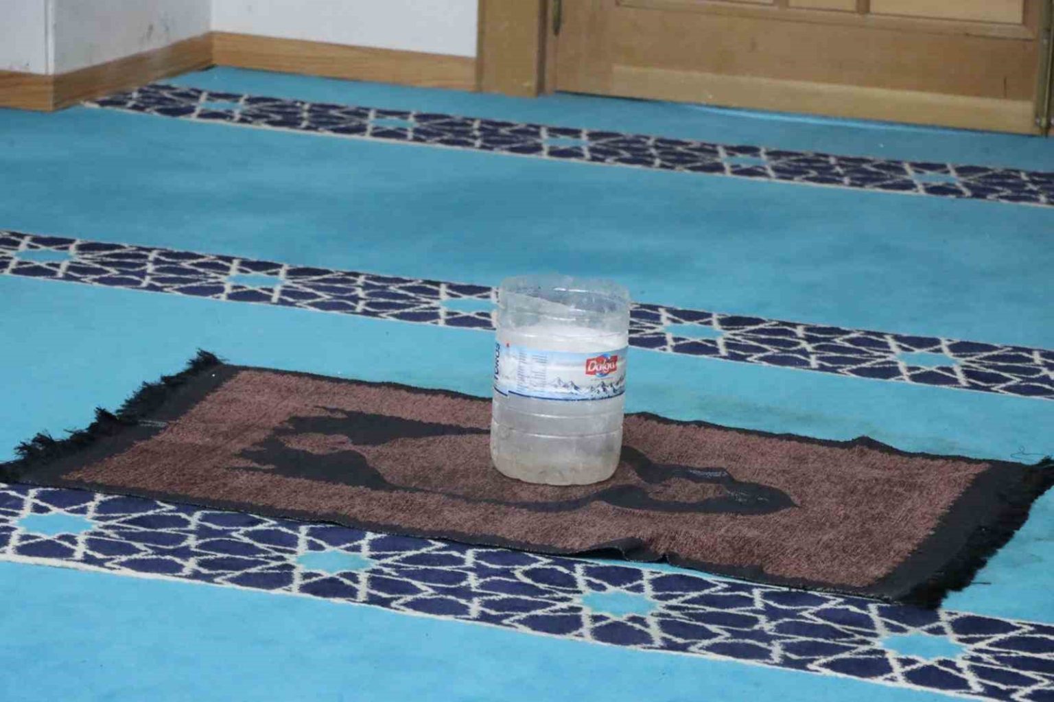 Yağışlı havalarda türbenin tavanından su damlatan türbede suyun zeminde birikmemesi için vatandaşlar kovalar bırakarak suyu tutmaya çalışıyor.