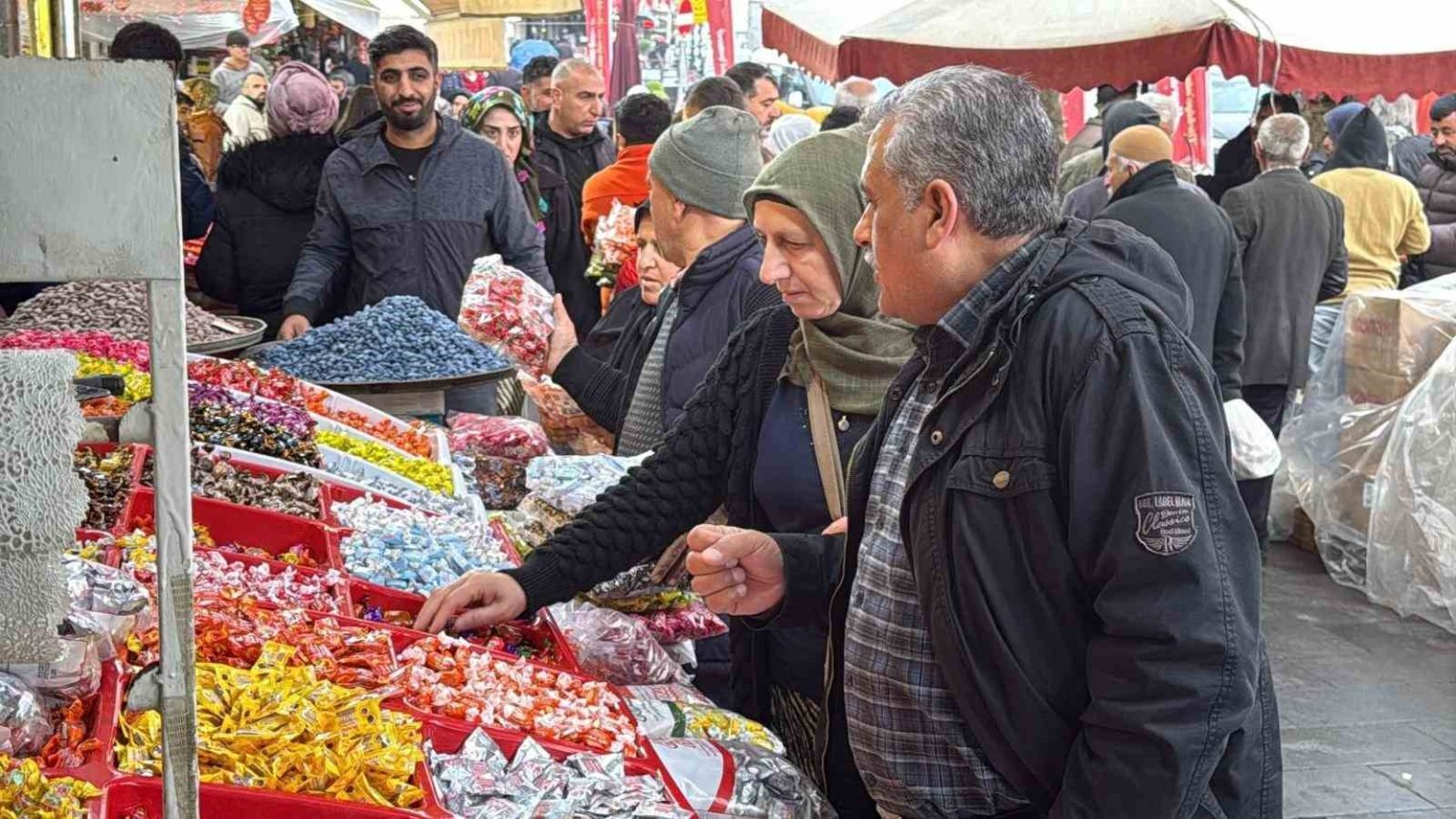 Ramazan Bayramı’na sayılı günler kala Diyarbakır’da etkili olan yağmur, esnafı hayal kırıklığına uğrattı. Sur ilçesinde tezgahlarını renkli bayram şekerleri, lokumlar, kolonyalar, çörek otları, kıyafetler ve birçok ürünle dolduran esnaf, yağmur nedeni ile vatandaşların dışarı çıkmadığını söyledi. Esnaf Enes Gündüz, Bayramın geçen bayramlara oranlar biraz daha iyi geçtiğini fakat bu bayram ekonominin değil yağmurun onları etkilediğini dile getirdi. Gündüz, “Çok aman aman bir yoğunluk yok ama yine de kötü değil. Bunun sebebi havanın yağışlı olması. Yağmur olmasaydı çok daha iyi ve yoğun çalışabilirdik ama yağmurdan dolayı işler çok duruldu. Şeker satış fiyatlarımız 220 lira’’ dedi.