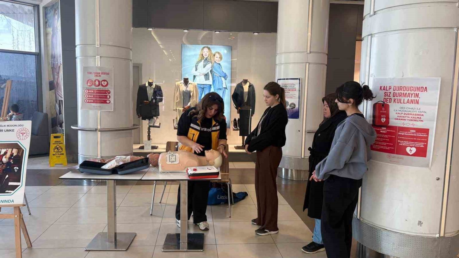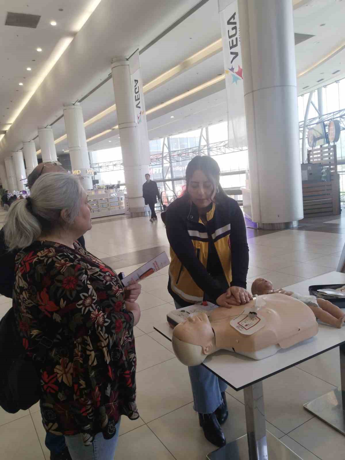 Etkinlik kapsamında kurulan stantta sadece teorik bilgi verilmekle kalınmadı, aynı zamanda pratik gösterimler de yapıldı. Sağlık ekipleri, Temel Yaşam Desteği (TYD) ve Otomatik Eksternal Defibrilatör (OED) cihazı kullanımı hakkında materyaller üzerinde uygulamalı gösterim sundu. Vatandaşların yoğun ilgi gösterdiği etkinlikte, hava yolu tıkanıklığı yaşayan birine yapılacak müdahaleler maketler eşliğinde anlatıldı.