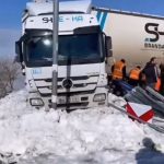 Edinilen bilgilere göre, dün akşam saatlerinde buzlanma nedeniyle kontrolden çıkan bir tır yoldan çıkarak yol kenarındaki bariyerlere çarparak durabildi. Uçurum kenarında şans eseri duran tır nedeniyle karayolu bir süre araç trafiğine kapandı.