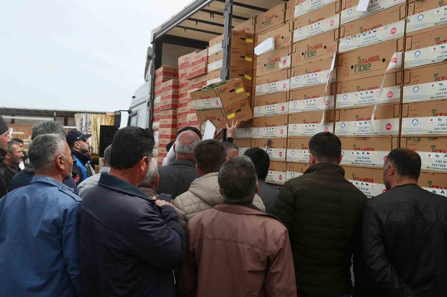 Konuşmaların ardından çiftçilere fideleri dağıtıldı.