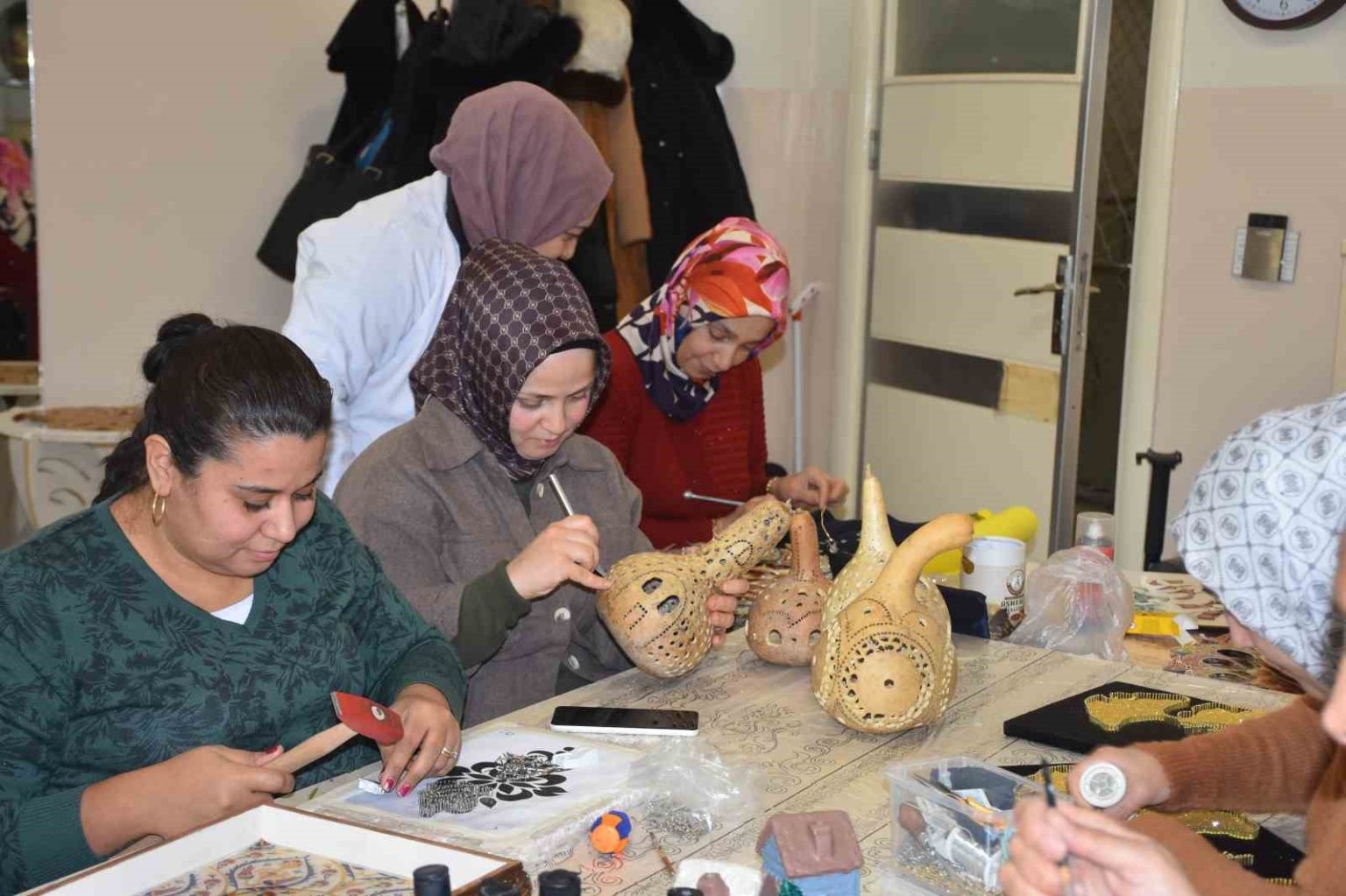 Evlerde atıl durumda bulunan ve kullanılmayan eşyalar, kursiyerlerin elinde yeniden hayat buluyor. Eski tepsiler, ahşap parçalar ve farklı materyaller, filografi, boyama ve rölyef teknikleriyle değerlendirilerek ekonomiye ve çevreye katkı sağlıyor.