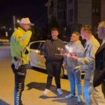 O anları cep telefonu kamerasına kaydeden gençler, ülke ve vatandaşlar için gece gündüz çalışan Türk polisine minnetlerini sundu.
