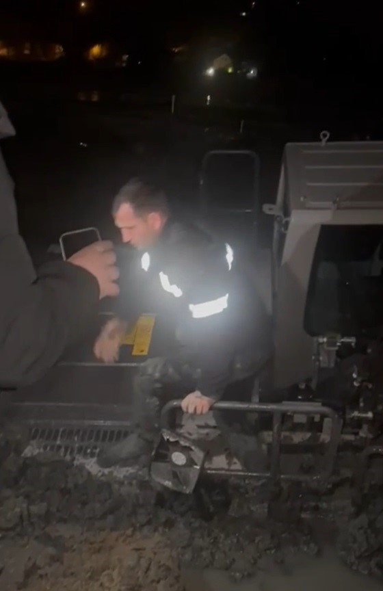Edinilen bilgiye göre, ilçedeki bir arazide yeni aldığı aracıyla deneme sürüşü yapan sürücü, aracın balçığa saplanması üzerine yardım çağırdı. Bölgeye sevk edilen 4 tonluk iş makinesi, kurtarma çalışması sırasında çamura gömüldü. Bunun üzerine bölgeye sırasıyla 14 ve 22 tonluk iki iş makinesi daha yönlendirildi. Zeminin yumuşak olması nedeniyle yardıma gelen iş makinelerinin de bataklığa saplanması üzerine bölgede kapsamlı çalışma başlatıldı.