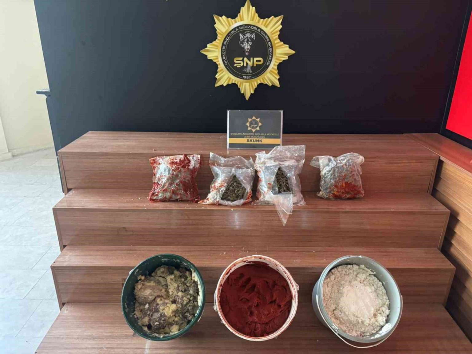 Şanlıurfa’da narkotik ekiplerince durdurulan bir araçta, salça ve peynir kovaları içine gizlenmiş 2 kilo 400 gram skunk ele geçirilirken, gözaltına alınan 1 şüpheli tutuklandı.