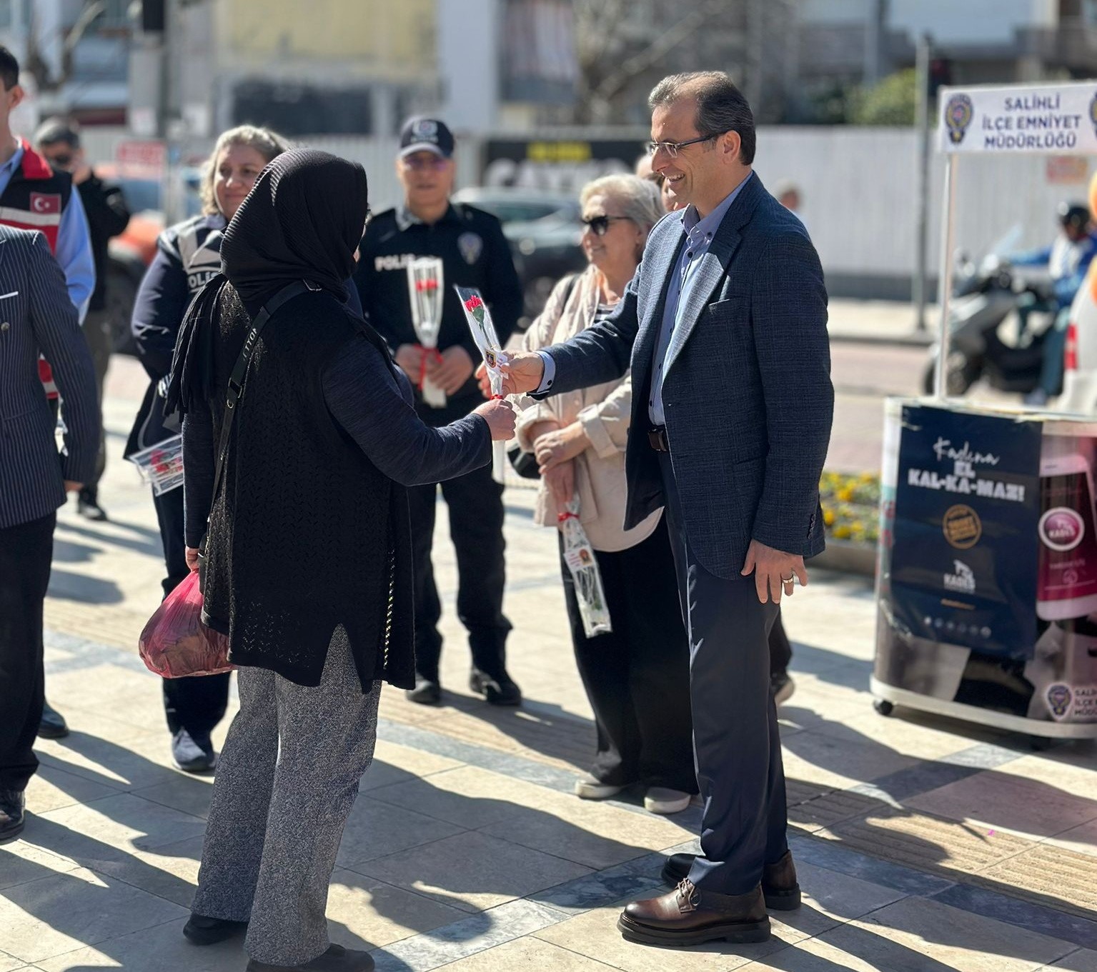 Kızılelma Meydanı’nda kurulan stantlarda Salihli İlçe Emniyet Müdürlüğü, Salihli İlçe Jandarma Komutanlığı ve Salihli Sosyal Hizmet Merkezi Müdürlüğü ekipleri tarafından vatandaşlara bilgilendirme yapılarak farkındalık oluşturuldu. Etkinlik kapsamında kadınların 8 Mart Dünya Kadınlar Günü de kutlandı. Stantları ziyaret eden Ali Güldoğan, vatandaşlarla bir süre sohbet ederek kadınların gününü kutladı ve karanfil verdi.