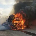 Yangında tır ve yüklü bulunan samanlar tamamen yanarak kullanılamaz hale geldi.