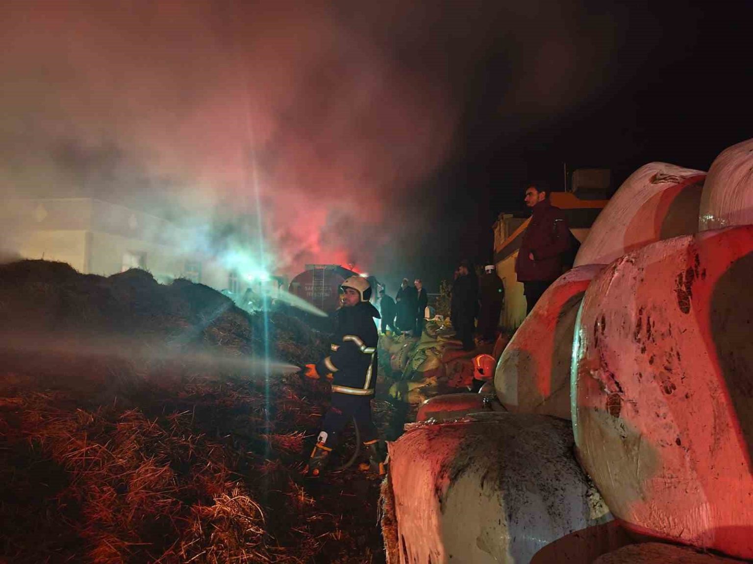 Samanlıkta çıkan yangın bitişikteki ağıla sıçramadan söndürüldü