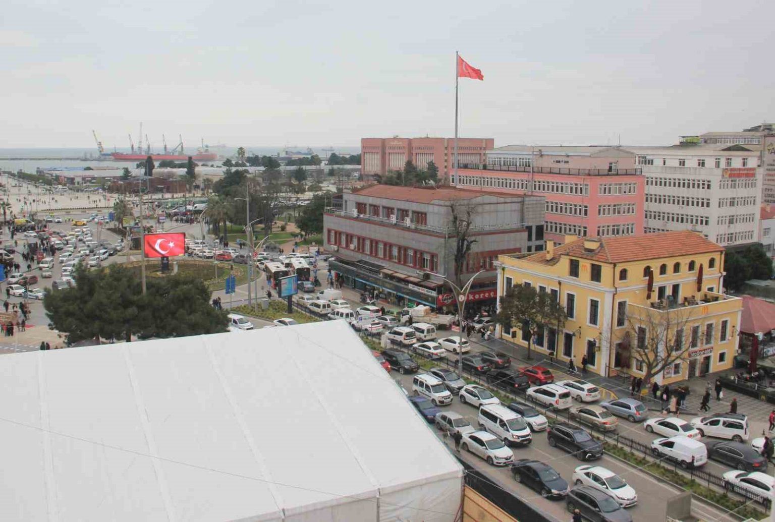 Ramazan Bayramı’na sayılı günler kala Samsun’da yaşanan yoğunluk günlük hayatı adeta kilitledi. Bayram alışverişi için kent merkezine yönelen vatandaşlar, hem trafikte hem de alışveriş noktalarında uzun kuyruklar oluşturdu.