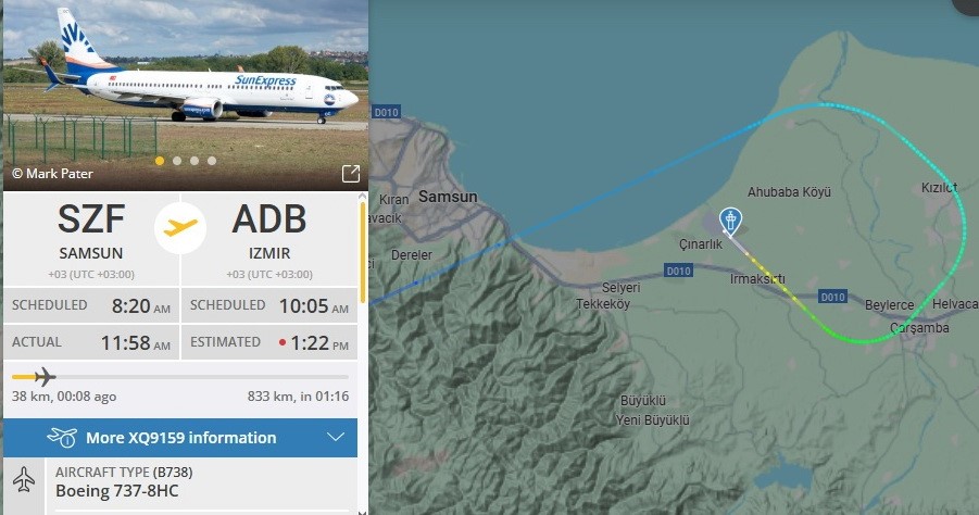 Aprona çekilen uçakta teknik ekip tarafından yapılan detaylı incelemenin ardından herhangi bir olumsuzluğa rastlanmadı. Kontrolleri tamamlanan uçak, 160 yolcusuyla birlikte saat 11.58’de Samsun’dan İzmir’e doğru kalkışını gerçekleştirdi.
