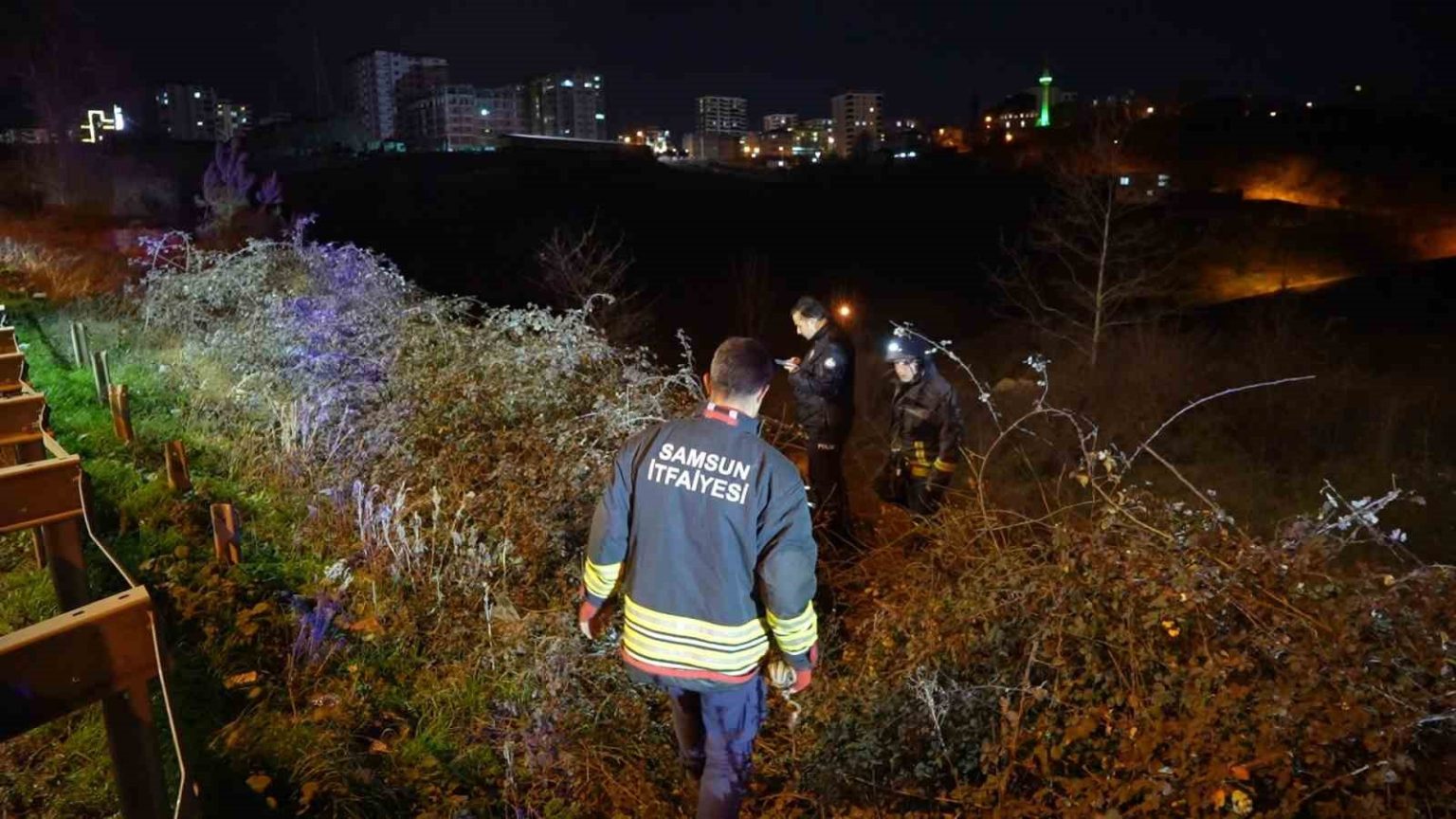 Samsun’da otomobil 3 metre yükseklikten düştü: Sürücü yara almadan kurtuldu