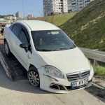 Samsun’da otomobil refüjü aşıp bariyere çarptı: 1 yaralı