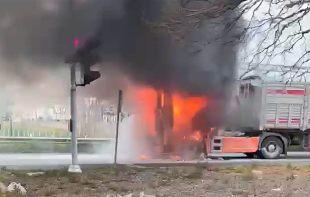 Bölgeye gelen ekiplerin hızlı müdahalesiyle kontrol altına alınan yangın dorse kısmına sıçramadan söndürülürken, yangınla ilgili inceleme başlatıldı.