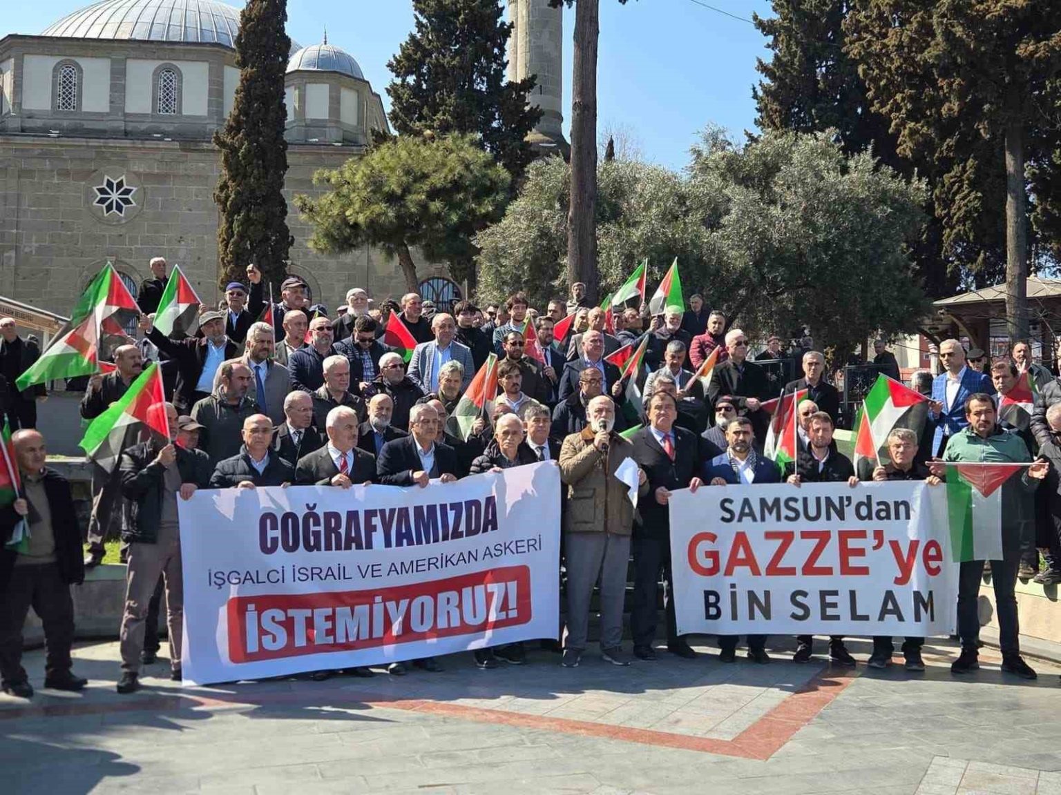 Samsun’da cuma namazı çıkışı cami avlularında İsrail protesto edilirken, Gazze’ye bin selam gönderildi.
