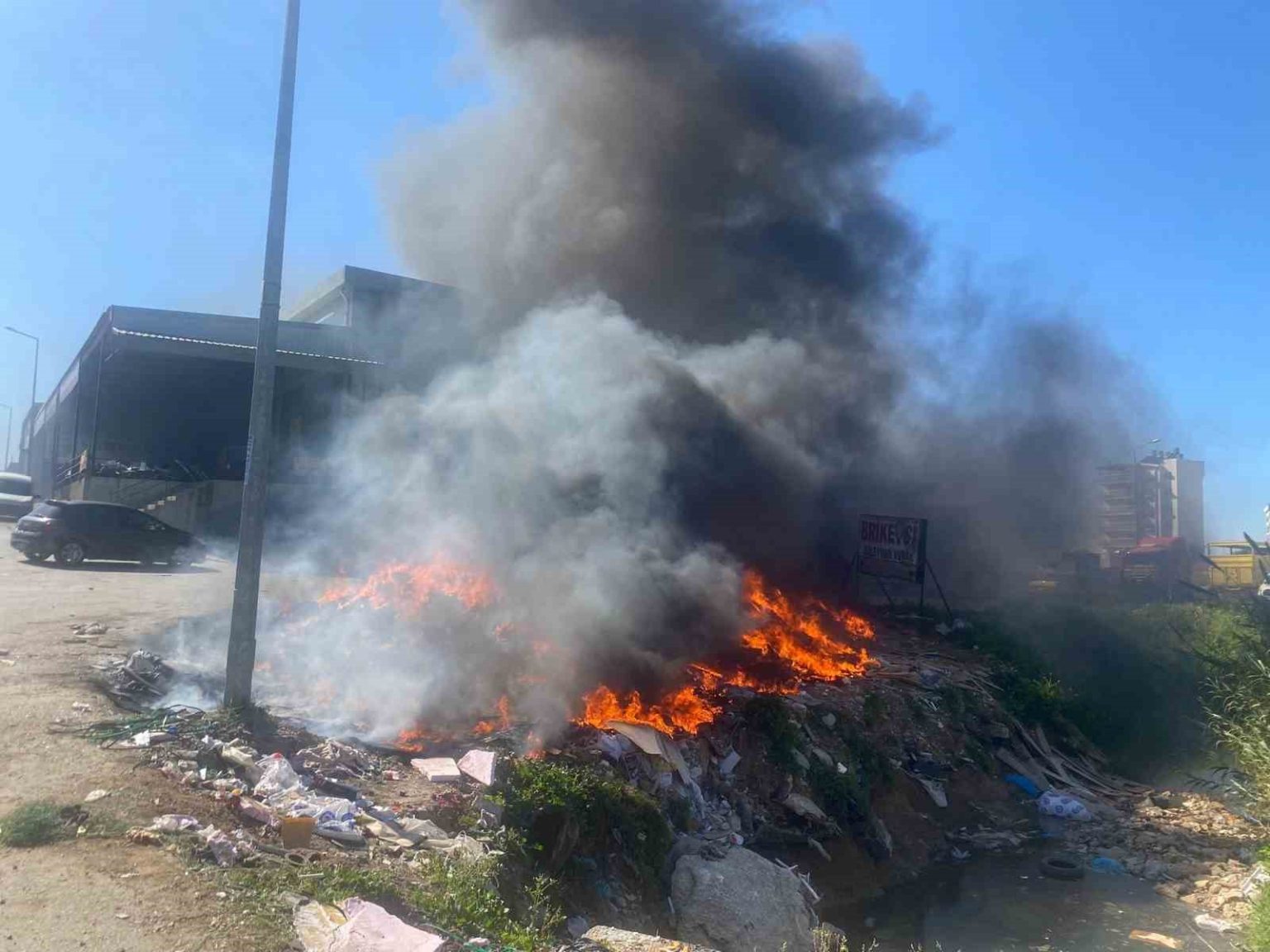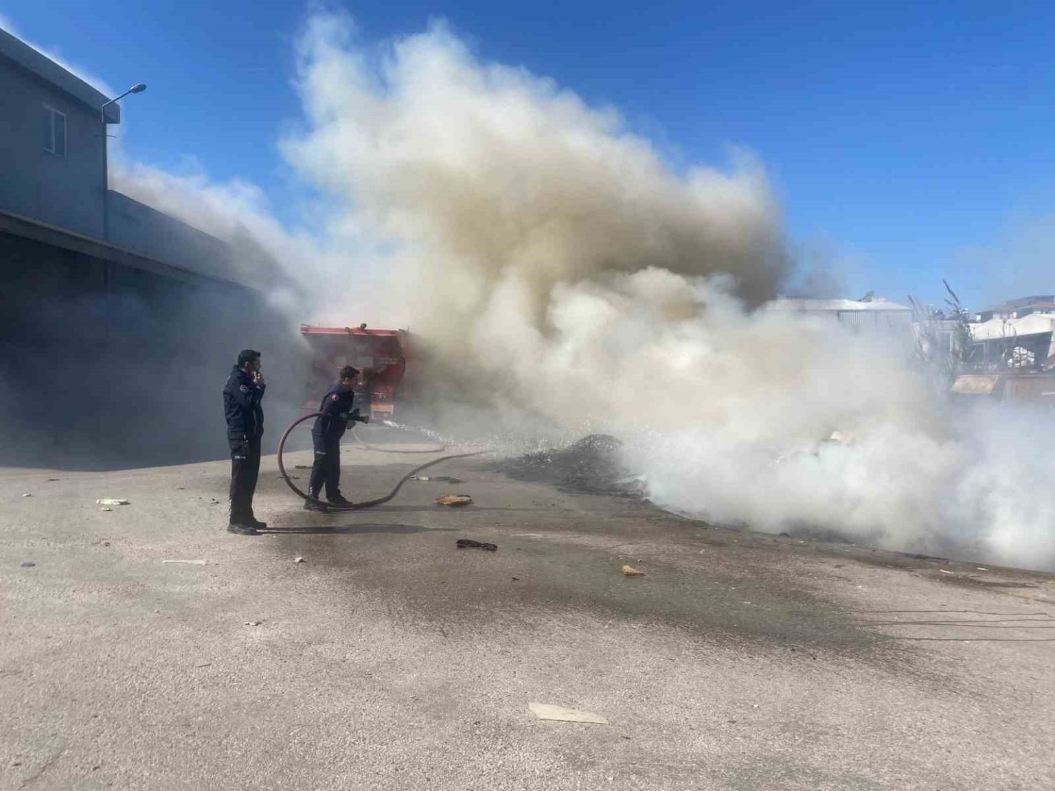 Yangın, Serik ilçesinde sanayi sitesi içerisinde hurda malzemeler ile çöplerin atıldığı boş alanda meydana geldi. Edinilen bilgiye göre, alanda henüz bilinmeyen bir nedenle yangın çıktı. Kısa sürede büyüyen alevler yoğun duman oluştururken, gökyüzünü siyah dumanlar kapladı. Vatandaşların ihbarı üzerine olay yerine itfaiye ve polis ekipleri sevk edildi. Yangın, ekiplerin hızlı müdahalesiyle çevrede bulunan iş yerlerine ve park halindeki araçlara sıçramadan kontrol altına alındı. Söndürme çalışmalarının ardından sanayi sitesinde hurdacılık yapan şahıs, iş makinesi yardımıyla alanda soğutma çalışması gerçekleştirdi.
