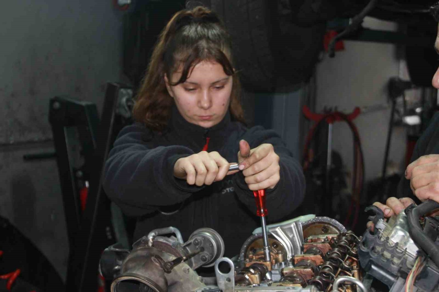 İşinden büyük keyif aldığını söyleyen Dilem Selis, mesleğini severek yaptığını belirterek, “2 senedir bu işi yapıyorum. Kendi isteğimle girdim. Küçükken hep bu şekilde büyüdüm ve sevdiğim işi yapmak istedim. Sevdiğim işin de burası olduğunu, buraya ait olduğumu düşünüyorum. Burada yağ ve balata bakımı, motor ve şanzıman sökmede yardımcı oluyorum. İnce işler harici ne verirlerse yaparım” dedi.