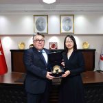 Zonguldak Bülent Ecevit Üniversitesi (BEUN) Rektörü Prof. Dr. İsmail Hakkı Özölçer, Şangay Dianji Üniversitesi (SDJU) Uluslararası Eğitim Fakültesi Dekan Yardımcıları Quanjing Chen ve Ye Shi’yi makamında kabul etti.
