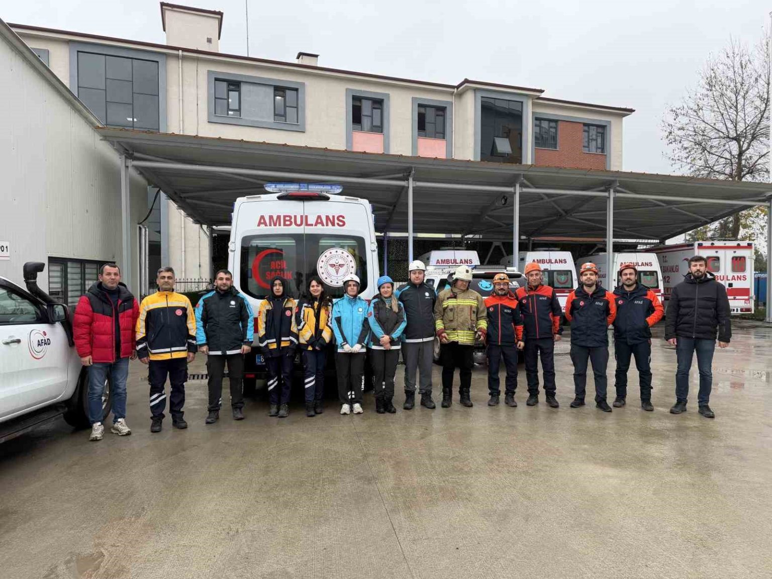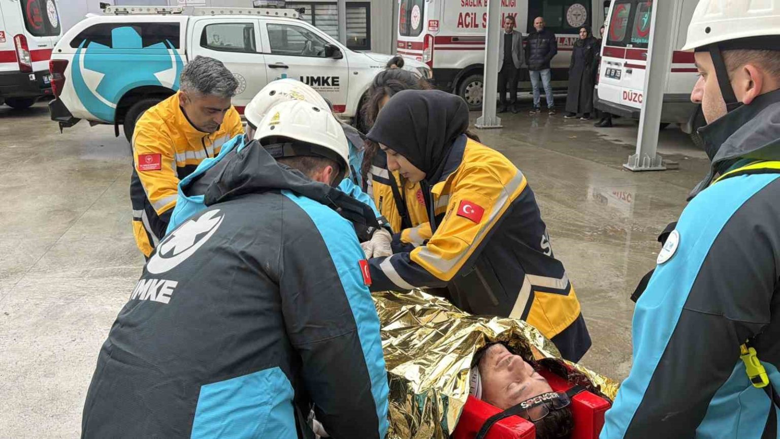 Düzce’de kurum ve kuruluşların muhtemel afetlere karşı hazırlıklı olması amacıyla yürütülen eğitim çalışmaları kapsamında, İl Ambulans Servisi Başhekimliği binasında kapsamlı bir tatbikat gerçekleştirildi. Sağlıkta kalite standartları ve iş sağlığı güvenliği gereği yapılan tatbikatta; itfaiye, UMKE, AFAD ve 112 Acil Sağlık ekipleri ortak bir operasyon yürüttü.