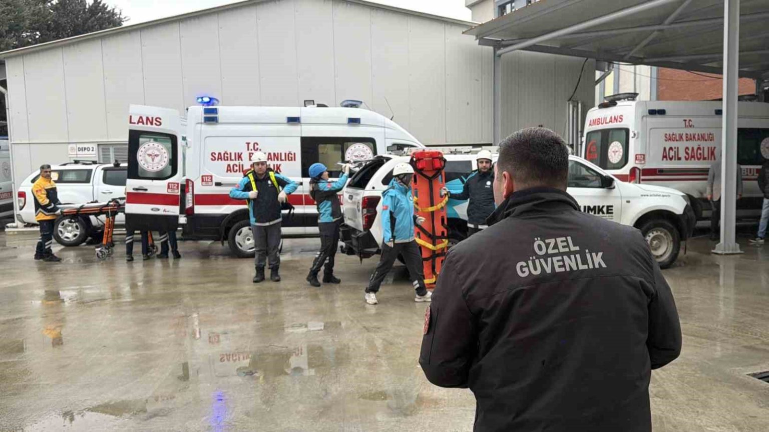 Bina içerisinde mahsur kalan bir güvenlik görevlisinin yaralandığı senaryoda, UMKE ekipleri hızla içeri girerek ilk müdahaleyi gerçekleştirdi. Yaralı personel, sedyeyle binadan çıkarılarak hazır bekletilen ambulansla hastaneye sevk edildi. Tatbikat, başarıyla tamamlandı.