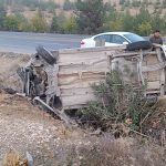 Şanlıurfa’da hafif ticari aracın devrilmesi sonucu meydana gelen kazada baba ve oğlu yaralandı.