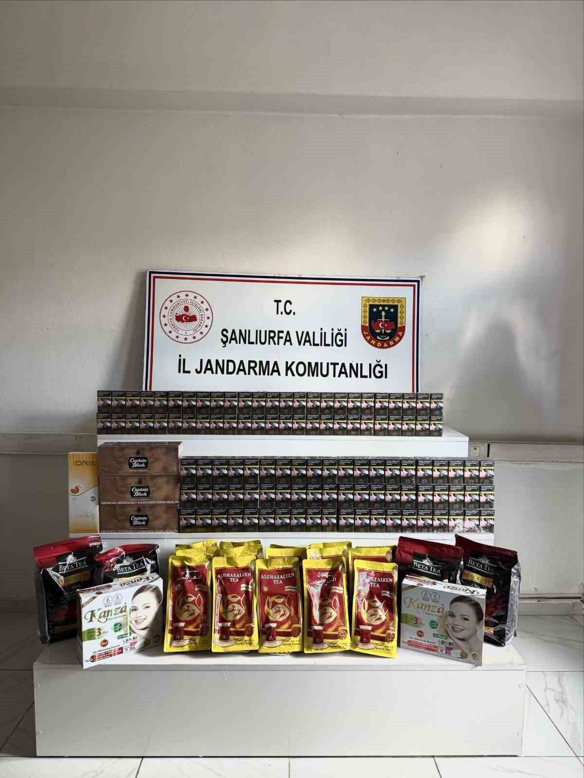 Şanlıurfa İl Jandarma Komutanlığınca, tütün ve alkol kaçakçılarına yönelik çalışmalar kapsamında Viranşehir ilçesinde operasyonlar gerçekleştirildi. Jandarma ekiplerince yürütülen faaliyetler sonucu 6 bin 290 adet gümrük kaçağı sigara, 50 paket kaçak sigara tütünü, 25 kilogram kaçak çay, 26 kilogram kaçak nargile tütünü, 2 paket kaçak materyal ile 7,5 litre kaçak alkol ele geçirildi.