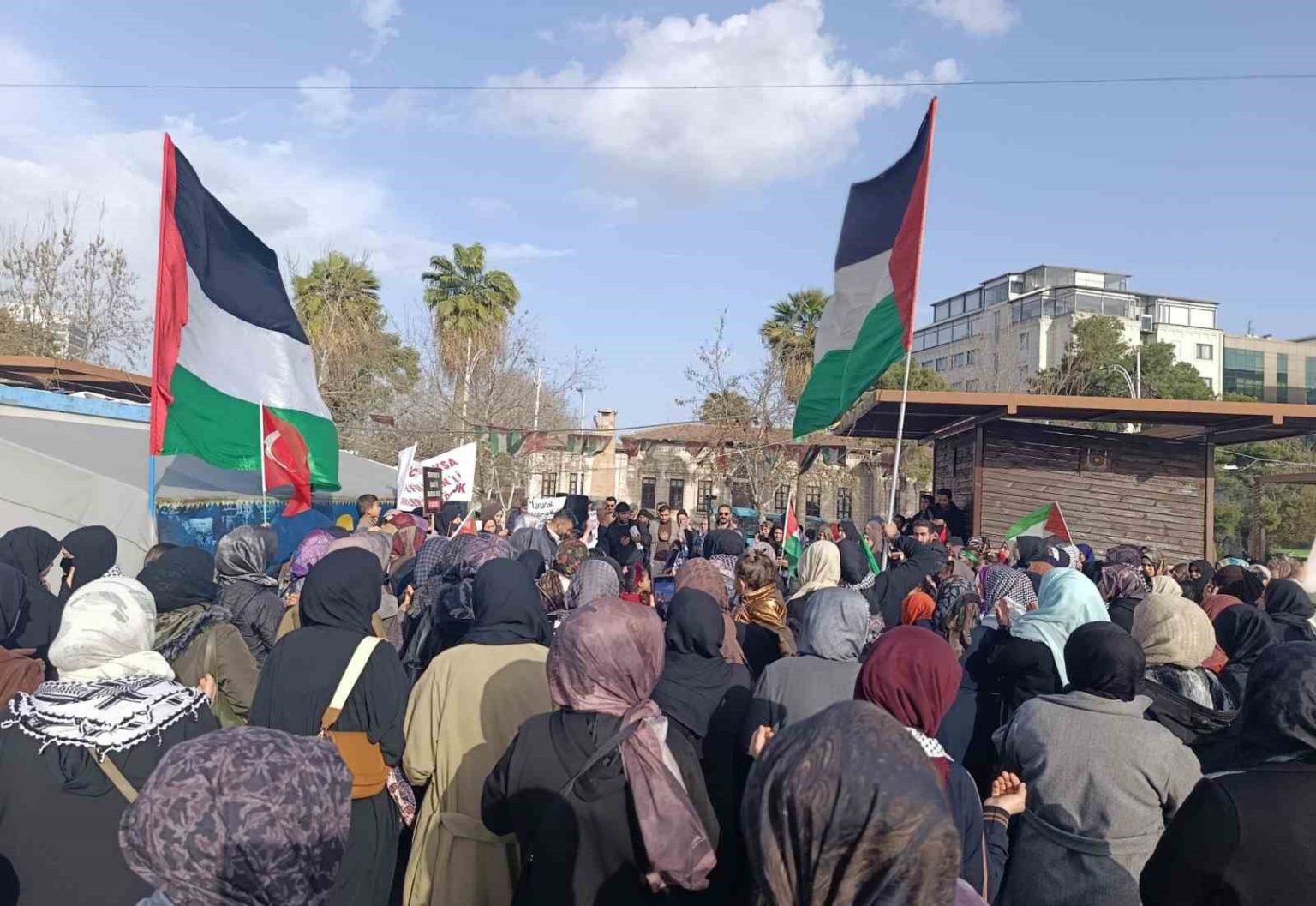 Topçu (Rabia) Meydanı’nda toplanan yüzlerce kadın, ellerindeki Filistin ve Türk bayrakları ile Gazze halkına destekte bulundu. Grup, Gazze halkı için dua etti, basın açıklaması ile İsrail’in idam yasasına tepki gösterdi.
