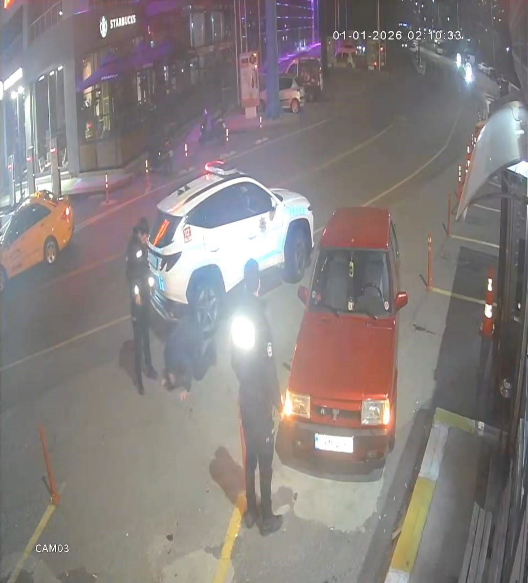 Yaşananlar, olayın meydana geldiği noktada bulunan bir taksi durağının güvenlik kamerasına saniye saniye yansıdı. Görüntülerde, şahsın ayakta durmakta zorlandığı, yere kendini bıraktığı ve polis ekiplerinin kontrollü müdahalesi net şekilde yer aldı.