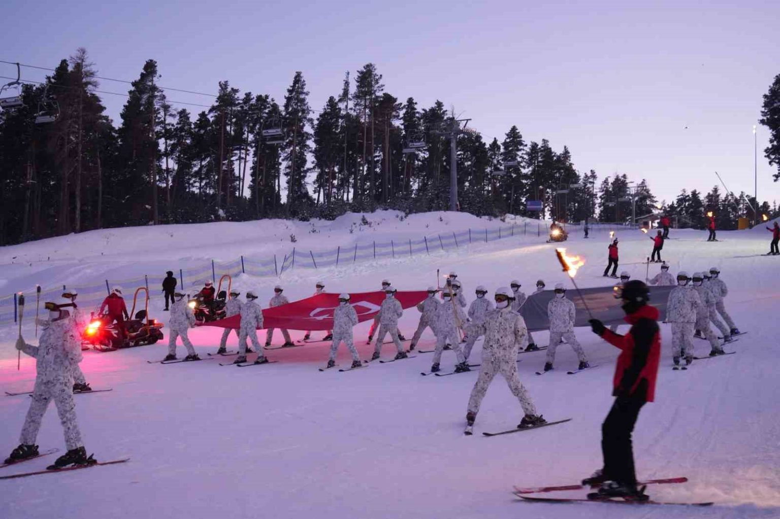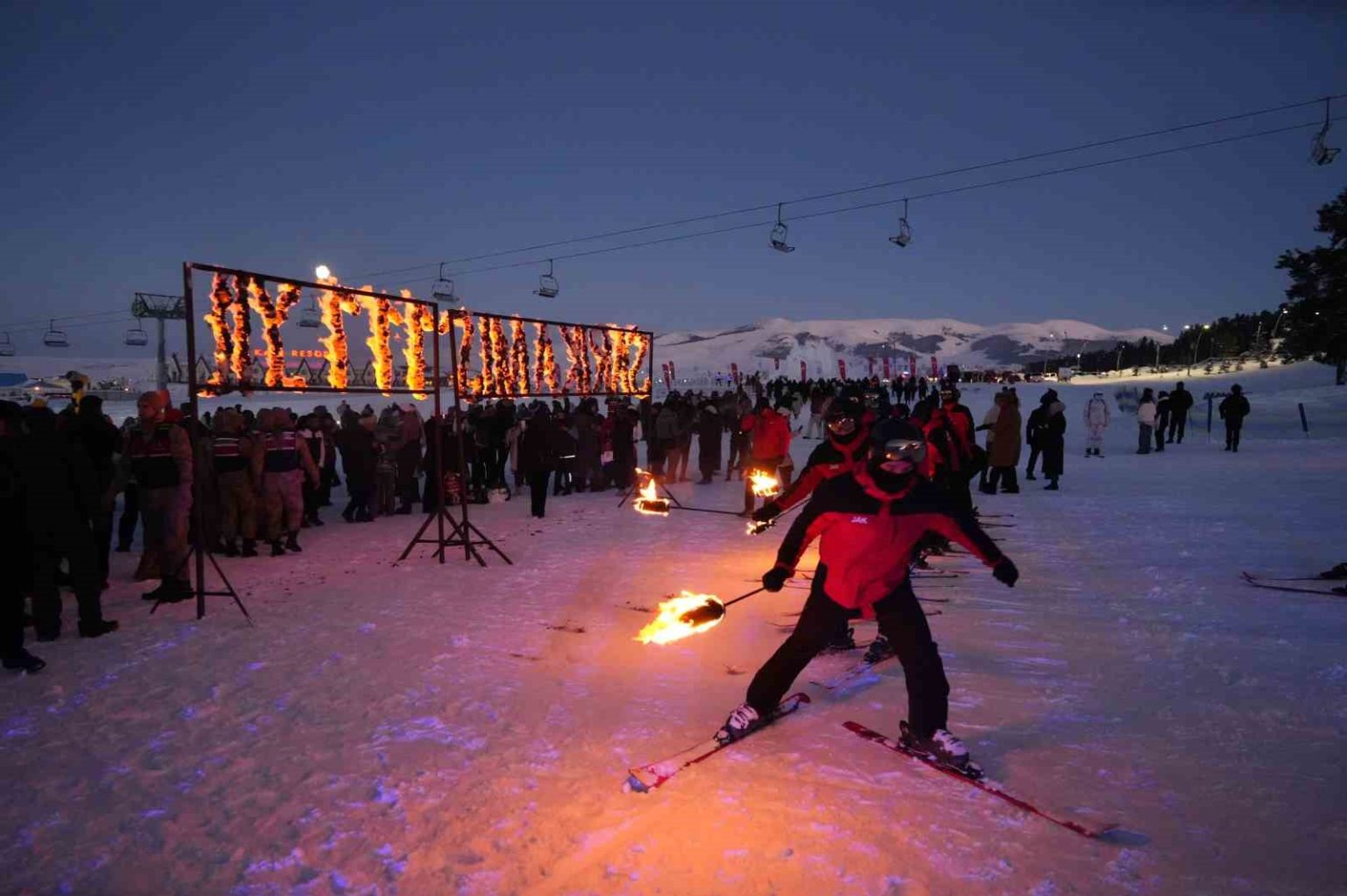 Sarıkamış’ta şehit olan askerlerin anısına kayak merkezinde meşaleli kayak gösterisi yapıldı. Sarıkamış Kayak Merkezi’nde akşam saatlerinde yapılan programa Aile ve Sosyal Hizmetler Bakanı Mahinur Özdemir Göktaş, Kars Valisi Ziya Polat, AK Parti Kars Milletvekili Adem Çalkın, kurum yöneticileri ve vatandaşlar katıldı.