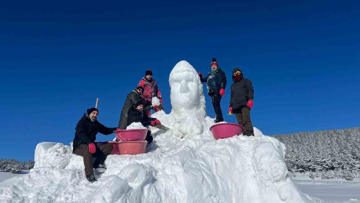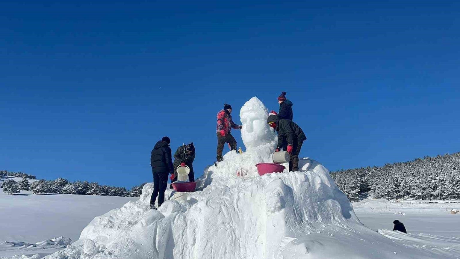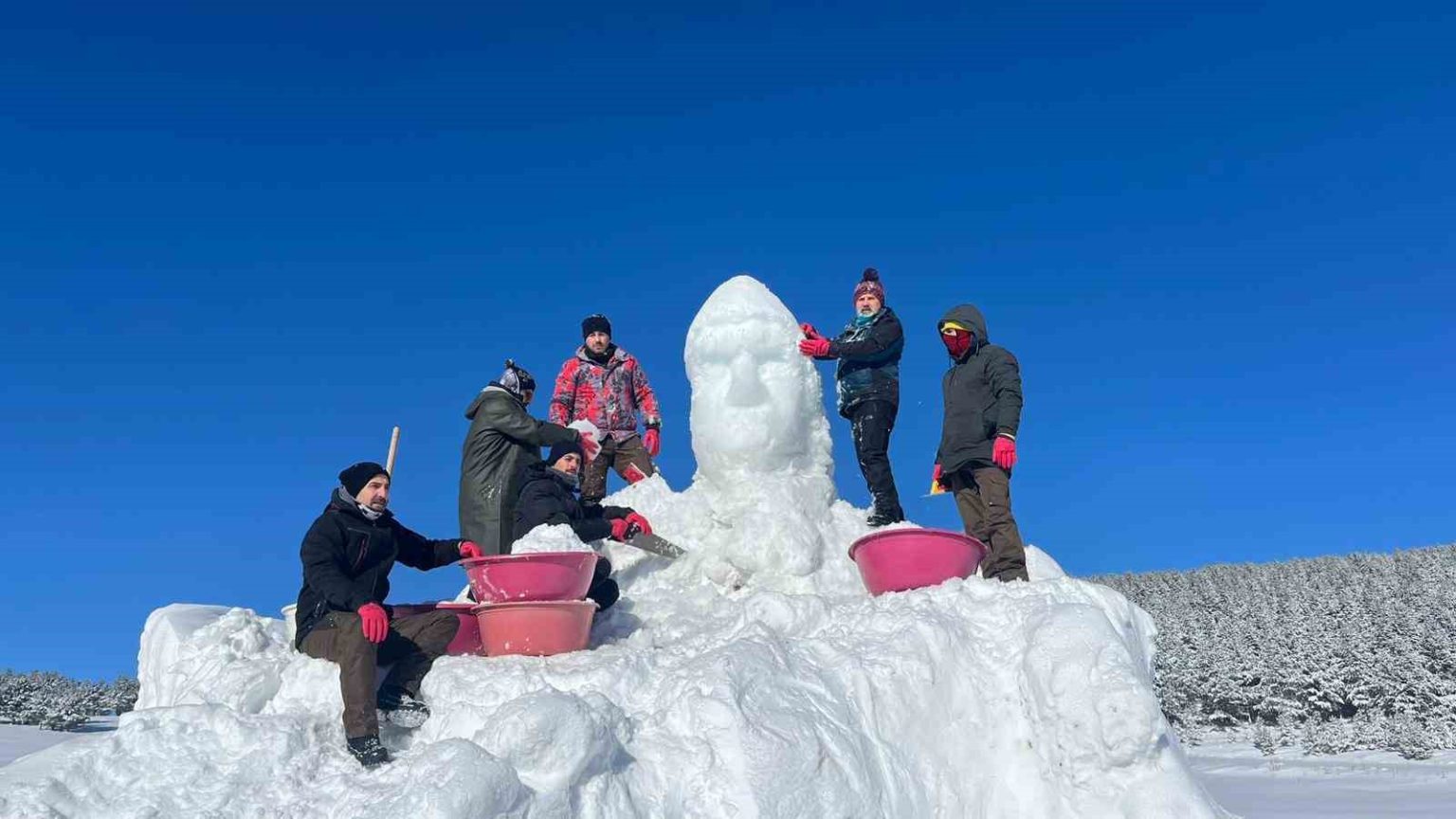 Sarıkamış’ta kardan heykellerinin yapımına başladıklarını ifade eden Kafkas Üniversitesi Öğretim Üyesi Muhammet Hanifi Zengin, “111. yılında Sarıkamış şehitleri anma programında şu anda Sarıkamış Kızılçubuk mevkiinde eski 15 derecede Sarıkamış dağlarında donarak şehit olan askerlerimizin anısına kardan heykel yapmaktayız. Burada 6 kişi çalışmaktayız. Hava soğuk, burası tam Kızılçubuk mevkii ve Osmanlı ordusunun burada son kez taarruz için toplandığı bir alan, biz de burada yapılacak program için kardan heykel yapmaya devam ediyoruz. 3-4 Ocak tarihi itibarıyla yapmış olduğumuz heykellerin açılışı yapılacak” dedi.