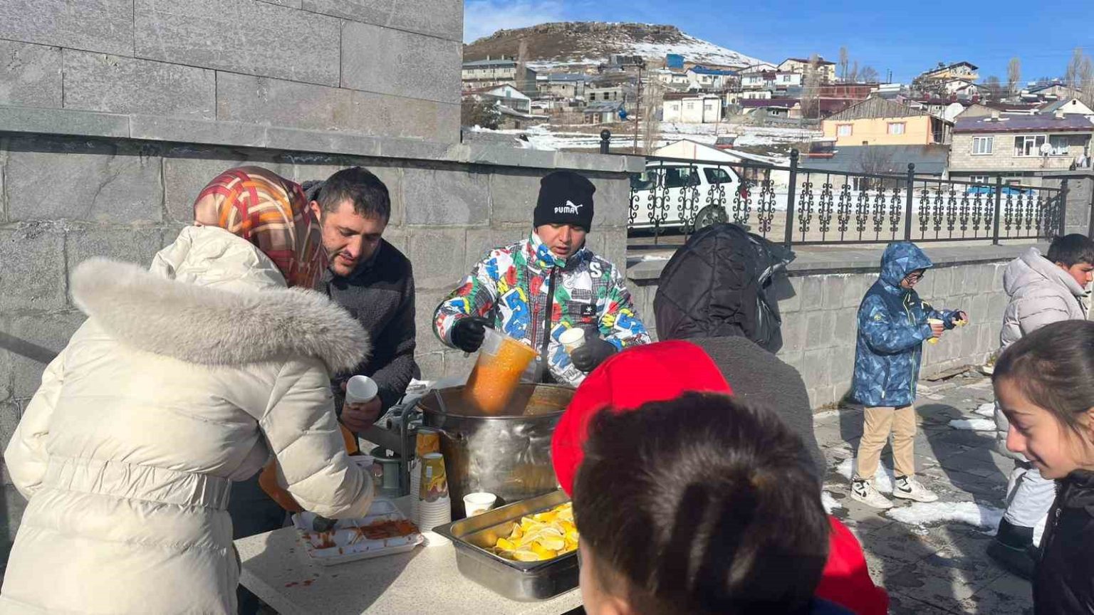Şehitlikte öğrencileri Turizm Mesleki Teknik Anadolu Lisesi öğrencileri ve okul müdürü Osman Karakurt yalnız bırakmadı. Liseli öğrenciler üşüyen minik öğrencilere sıcak çorba ikram ederek ısıttı.