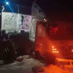 Sarıkamış’ta buzlanan yolda otobüs kamyona çarptı. Kazada 9 kişi yaralandı.