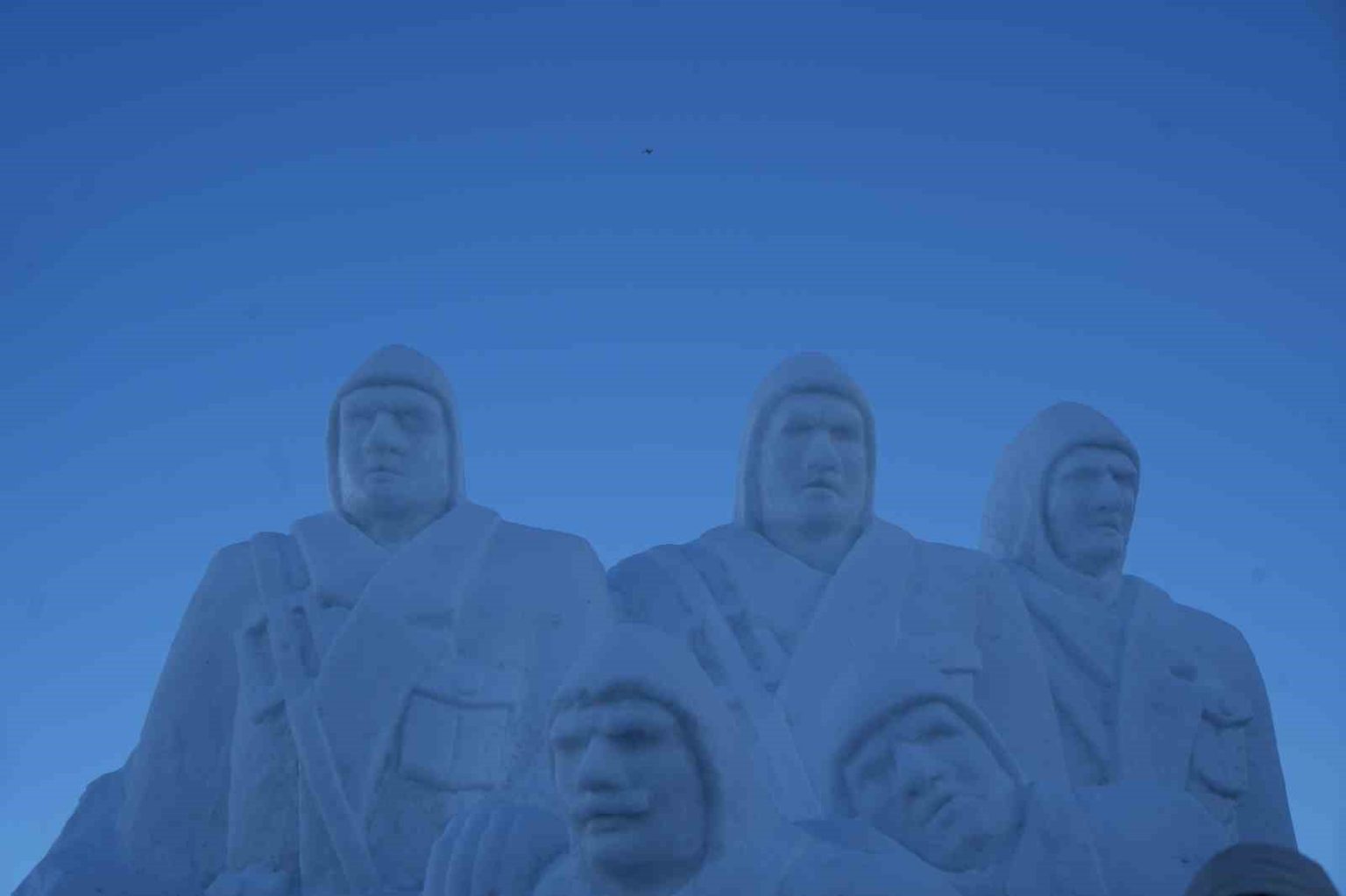 Sarıkamış’ta şehitler anısına kardan heykeller açıldı