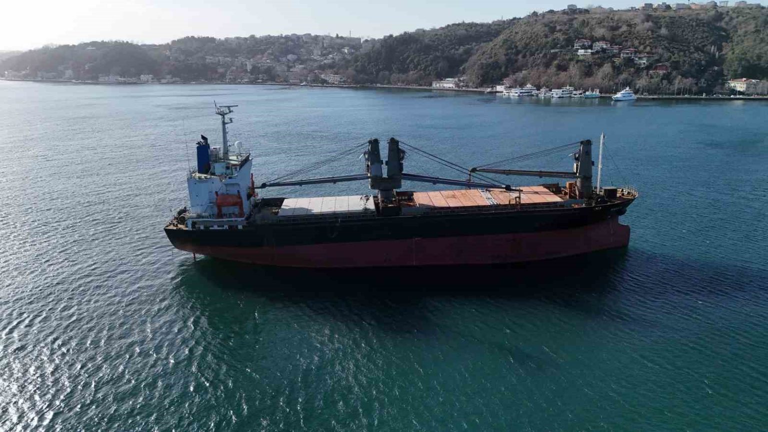 Kastamonu Cide açıklarında vurulan ardından Sarıyer açıklarında karaya oturan ve dün akşam da fırtınanın etkisiyle İstanbul Boğazı’nda savrulan ’Razouk’ isimli gemi kurtarıldı. Sarıyer Büyükdere açıklarına demirleyen gemi havadan görüntülendi.