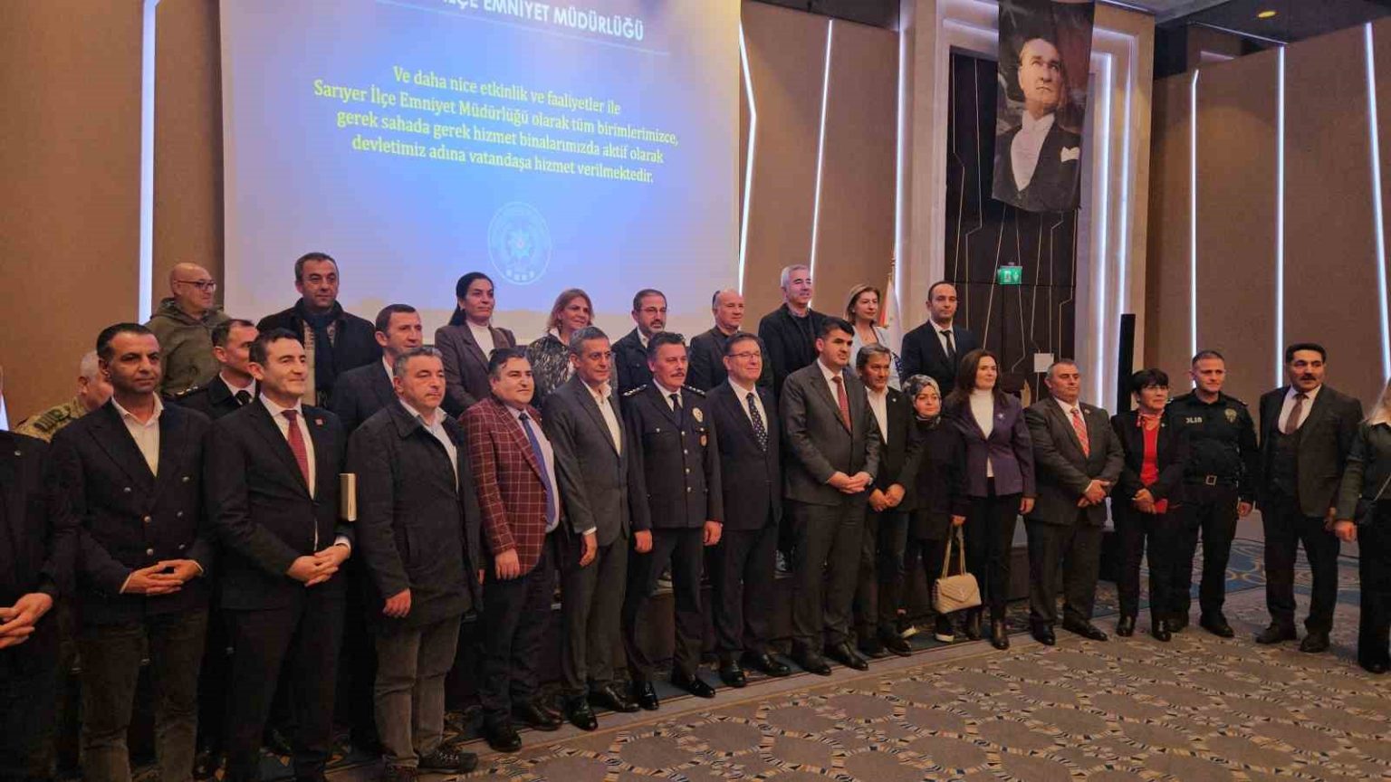 Sarıyer’de 2025 yılı ‘Huzur Toplantısı’ düzenlendi. İlçedeki bir otelde düzenlenen toplantıya Sarıyer Kaymakamı Ömer Kalaylı, Sarıyer İlçe Emniyet Müdürü Şinasi Yüzbaşıoğlu, Sarıyer Jandarma Komutanı Binbaşı Burhan Çolak, Sarıyer Garnizon Komutanı Deniz Albay Bülent Akbaş ve Sarıyer Belediye Başkanı M. Oktay Aksu katıldı. 2025 yılı içinde yapılan geride kalan 11 aylık asayiş olayları toplantıda ele alındı. Toplantıda 2024 yılında toplam 8 bin 694 olayın yaşandığına dikkat çekilirken bu yıl 7 bin 17 olay yaşandığı ve suç oranının yüzde 19 azaldığına değinildi. 2024 yılında olay aydınlatma yüzde 97 olarak kayda geçerken, 2025 yılında bu oranın yüzde 99 olduğu ifade edildi.