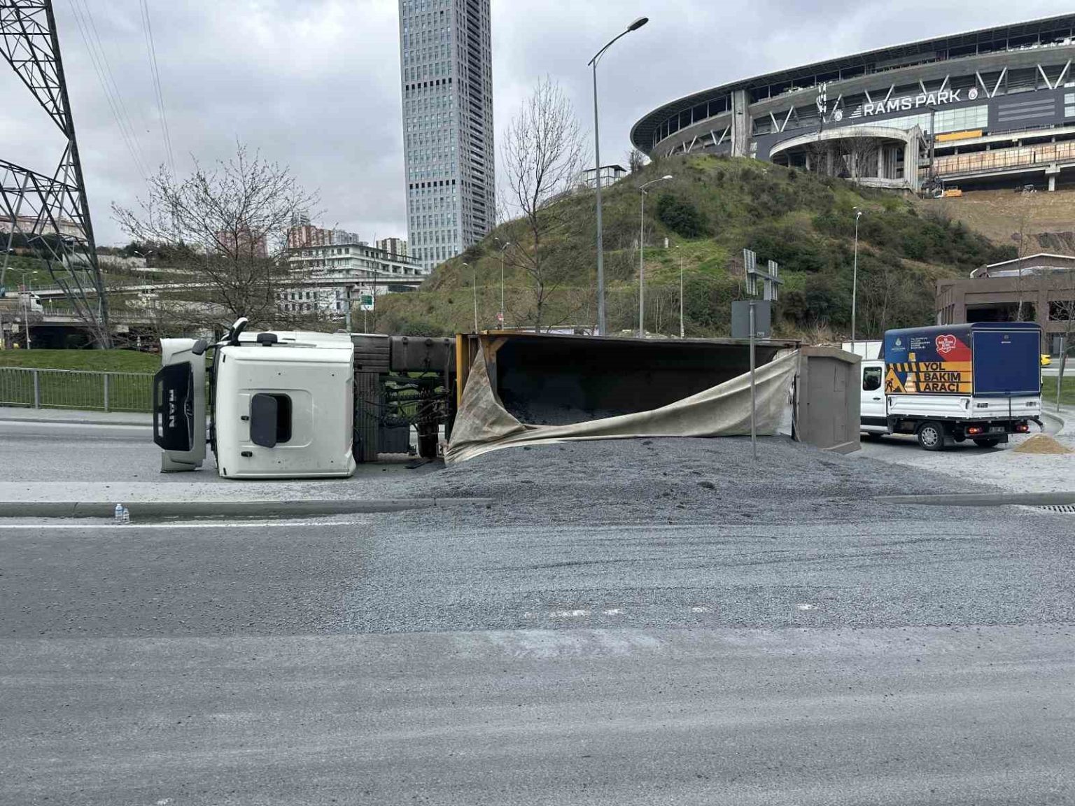 Kaza saat 14.00 sıralarında Metin Oktay Caddesi üzerinde meydana geldi. Edinilen bilgilere göre, Y.E.K. idaresindeki mıcır yüklü 34 PNU 403 plakalı hafriyat kamyonu viraja girdiği sırada sürücüsünün direksiyon hakimiyetini kaybetmesi sonucu devrildi. Devrilen kamyondaki mıcır yola savrulurken, kazayı gören vatandaşların ihbarı üzerine olay yerine polis ve sağlık ekipleri sevk edildi. Kazada hafif şekilde yaralanan sürücü, sağlık ekiplerinin ilk müdahalesinin ardından ambulansla hastaneye kaldırıldı. Polis ekipleri kaza yerinde güvenlik önlemi alırken, devrilen kamyonun kaldırılması için çalışma başlatıldı. Kazayla ilgili inceleme sürüyor.