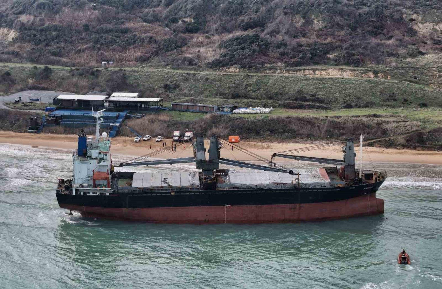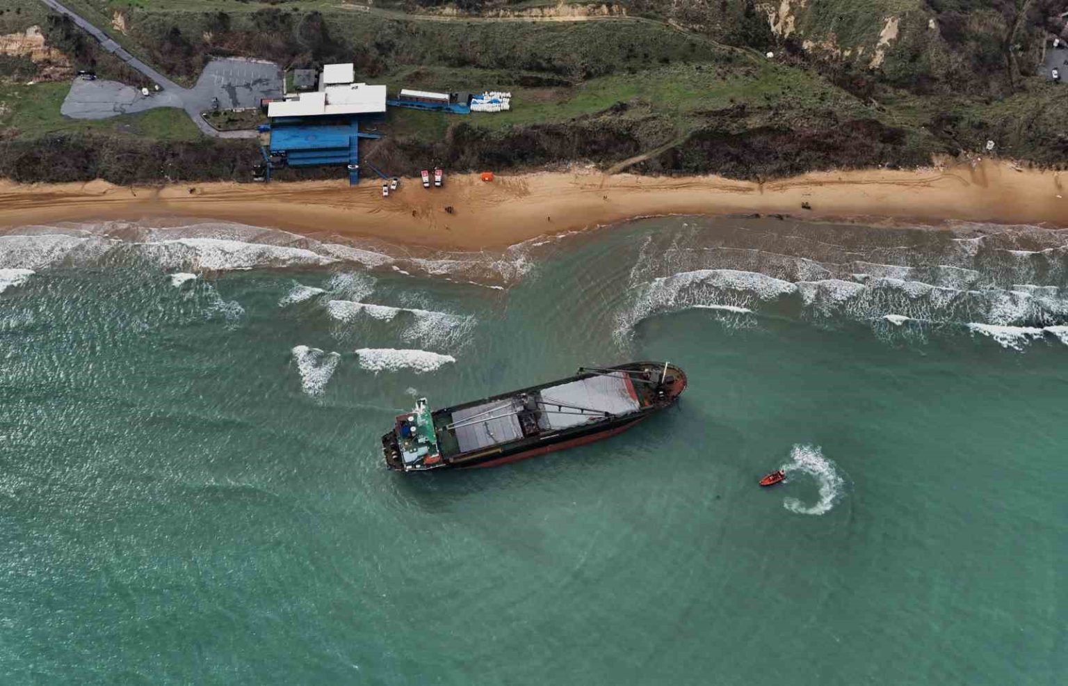Kastamonu Cide açıklarında 12 gün önce vurulan ve pazar günü Sarıyer açıklarında karaya oturan ’Razouk’ isimli gemiyi kurtarma çalışmaları devam ediyor. Kıyı emniyetine bağlı iki dalgıç su altından hasat tespit çalışması başlatırken, çalışmaların yapıldığı gemi havadan görüntülendi.
