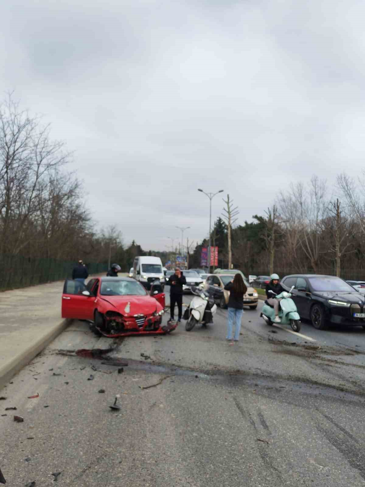 Olay, dün saat 12.00 sıralarında Sarıyer Büyükdere Caddesi üzerinde meydana geldi. Edinilen bilgiye göre, seyir halindeki otomobil, sürücüsünün kontrolünden çıkarak refüj aşıp karşı şeritteki otomobile çarptı. Olayda yaralanan olmazken, kaza maddi hasarla atlatıldı. O anlar seyir halinde bulunan başka bir otomobilin araç kamerasına saniye saniye yansıdı. Kaza ile ilgili inceleme başlatıldı.